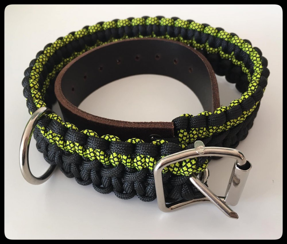 I handmade these dog collars with colorfull paracord and quality leather, equipped with a metal buckle for adjustability.